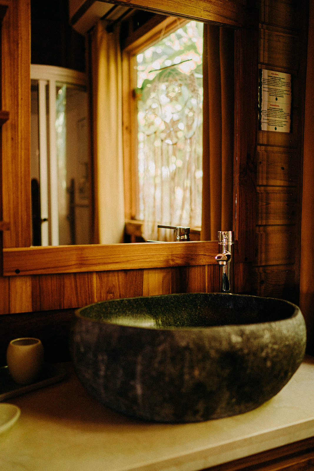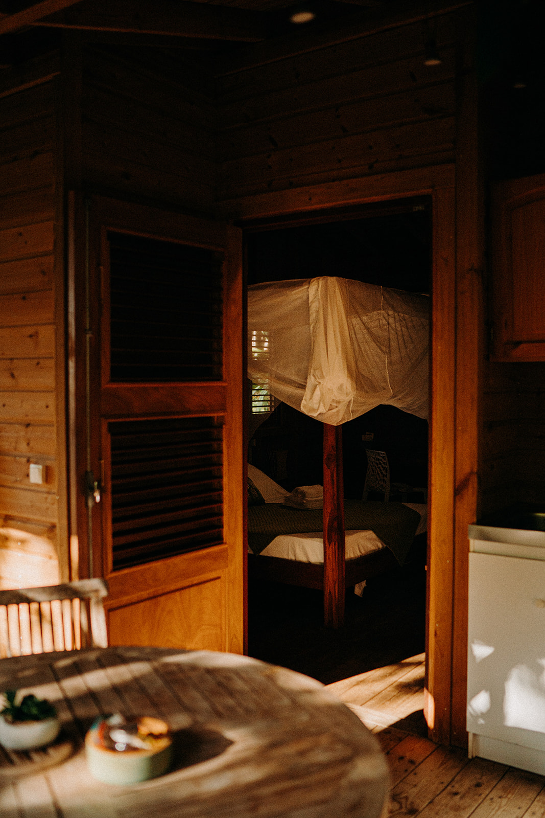 La Ti Kaz Bwa conçue pour deux personnes, tout en bois, perdue au milieu des arbres, est idéale pour un couple amateur de nature.